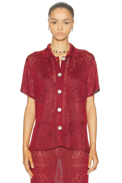 Pointelle-knit Midi Skirt In Burgundy