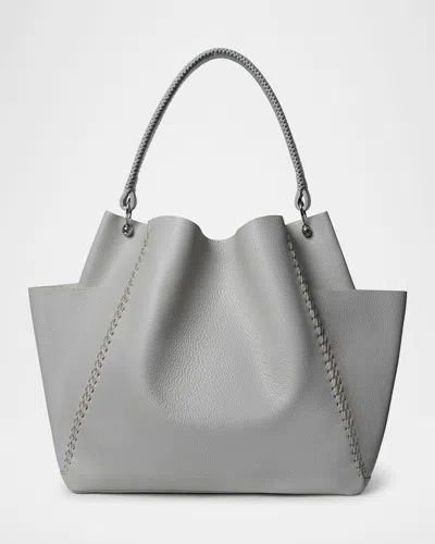 Duo Slim Medium Grained Leather Tote Bag In Gray