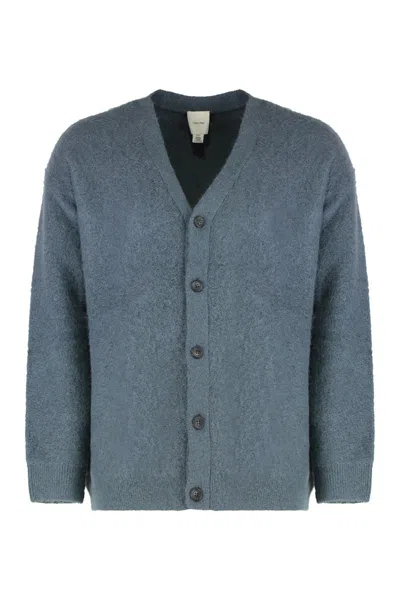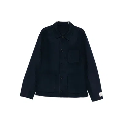 Blue Crewneck Sweater With Logo Embroidery On The Front And Dropped Shoulders In Wool Man