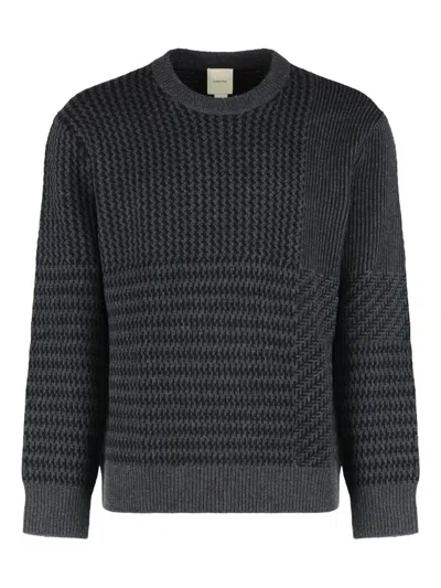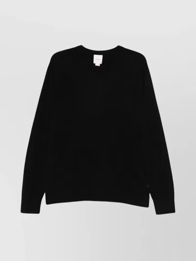 Wool Crewneck Sweater With Ribbed Cuffs And Hem In Black