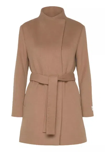Wool Funnel Neck Coat In Beige