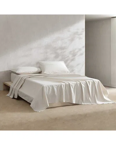 200 Thread Count Washed Percale Cotton Sheet Set In White