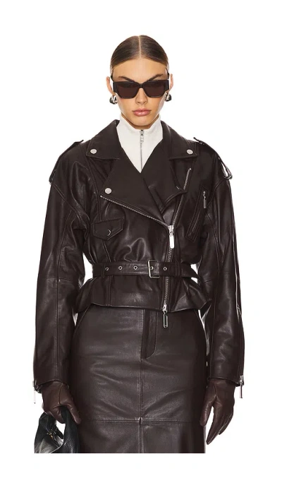 Ambrosia Leather Moto Jacket In Espresso Brown
