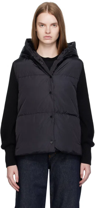 Puffer Jacket With Contrasting Knit Sleeves And Hood In Black