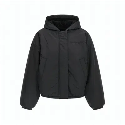 Short Down Jacket With Hood And Knit Sleeves In Black