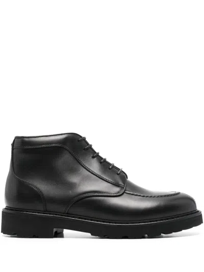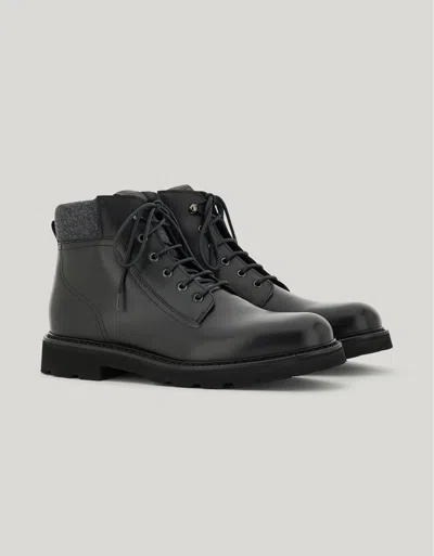 Black Calfskin Ankle Boot With Padded Wool Detail