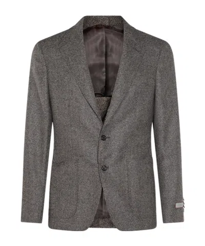 Grey Wool Blend Casual Jacket In Multi
