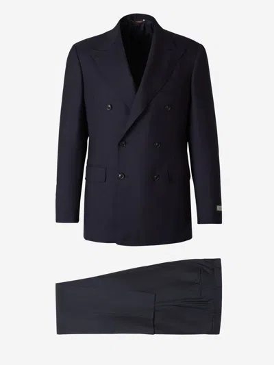 Double-breasted Wool Suit In Blau Nit