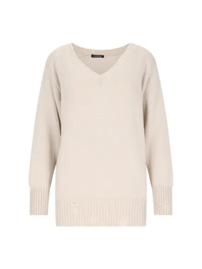 Destroyed Details Sweater In Grey Cashmere In Beige