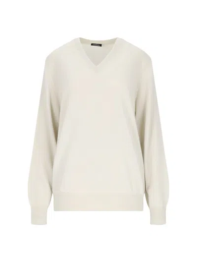 V-neck Sweater In Black Cashmere Ribbed Trim