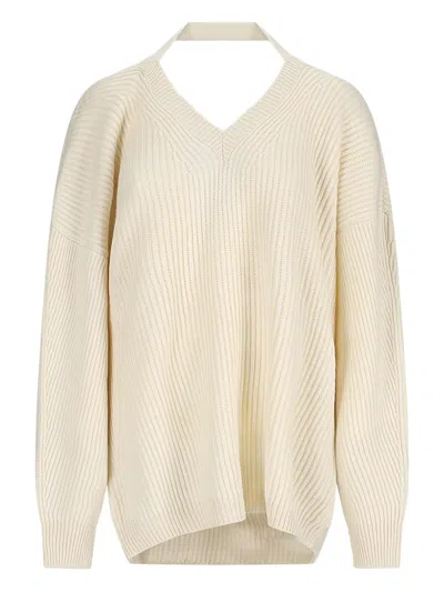 Destroyed Details Sweater In Grey Cashmere In Beige