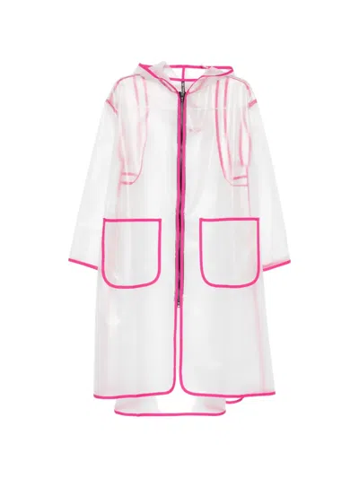 Hooded Contrast-trim Cape In White