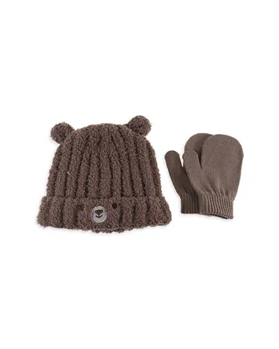 Boys' Bear Rib Knit Cuff Hat & Mitten Set - Baby In Brown Combo