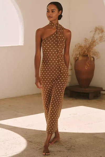 Poppy Cutout Halter Cover-up Dress In Beige