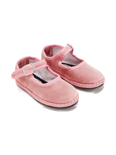 丝绒扣环平芭蕾底鞋