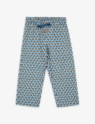 Boys Blue Geo Print Kids Ficus Geometric-print Cotton Trousers 3-12 Years