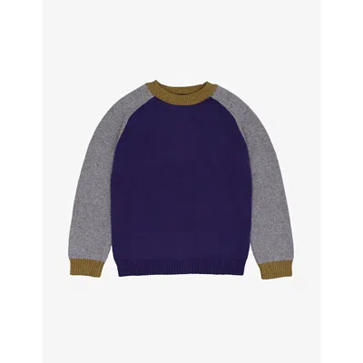 Boys Royal Blue Kids Poa Contrasting Cotton-blend Jumper 3-12 Years