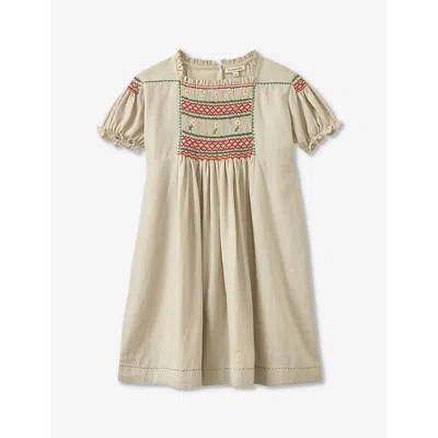 Girls Beige Kids Moringa Embroidered Linen-blend Dress 3-12 Years