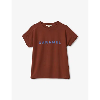 Girls Burgundy Kids Cress Logo-print Cotton-blend T-shirt