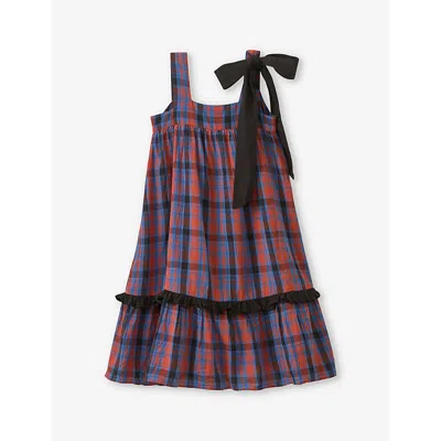Kids' Peony Tartan Cotton Dress 3-12 Years In Red/blue Tartan