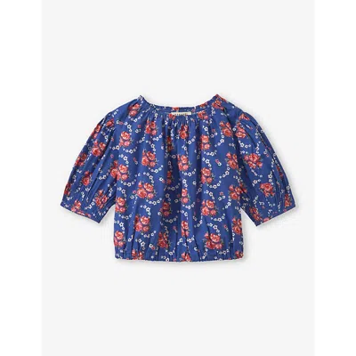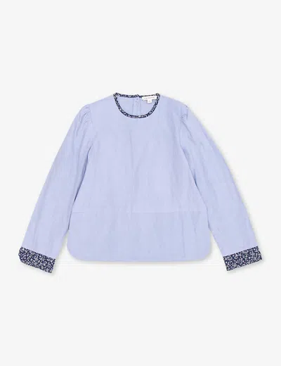 Girls Slate Blue Kids Osprey Floral-trim Long-sleeve Cotton Blouse 3-12 Years