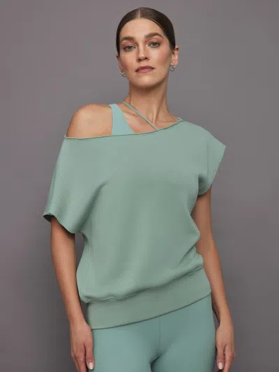 Short Sleeve Off Shoulder Sweatshirt In French Terry In Granite Green