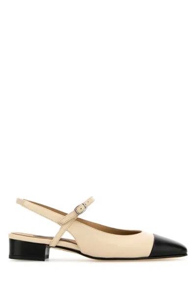 White Slingback Pumps With Contrasting Toe In Leather Woman In Multi