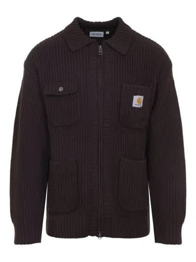 Ip Mens Chore Logo-patch Knitted Wool-blend Cardigan Palisander In Brown