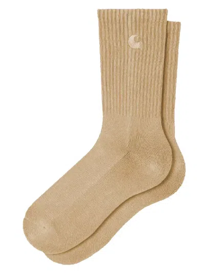 Hudson Logo-embroidered Ribbed Socks In Brown