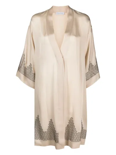 花卉印花真丝睡袍