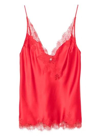 CALAIS-CAUDRY 蕾丝边饰真丝吊带上衣