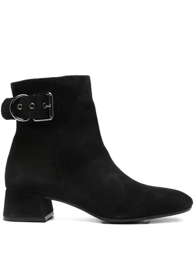 Buckle-detail Square-toe Ankle Boots In Black
