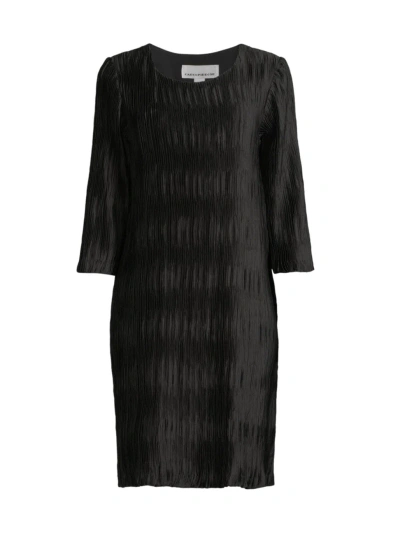 Women's Plissé Three-quarter Sleeve Dress In Black