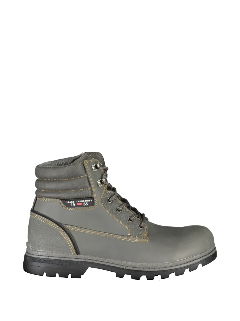 Dapper Beige Lace-up Boots With Contrast Detailing In Yellow