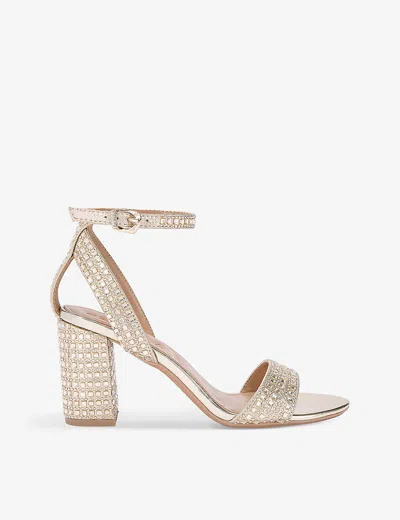 Womens Gold Petalo Rhinestone-embellished Metallic Faux-leather Heeled Sandals Eur 40 / 7 Uk
