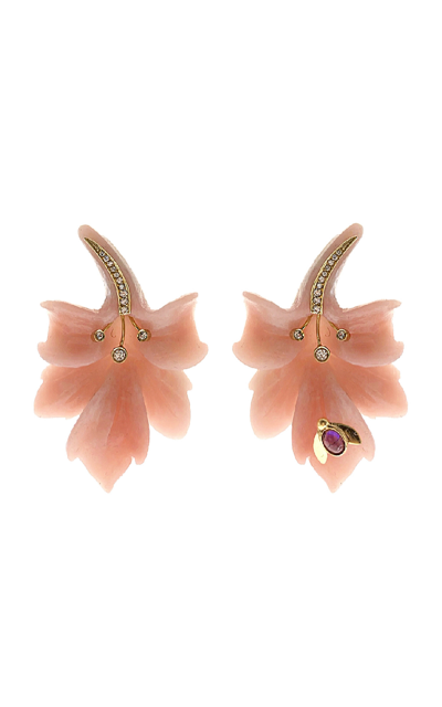 18k Yellow Gold Earrings With Angel Skin Coral; Diamonds; And Amethyst In Pink