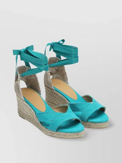 Aquamarine Wedge Heel Cross Strap Espadrilles In Blue