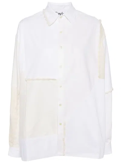 拼接钩编针织边饰衬衫