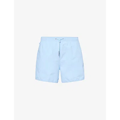 Mens Sky Blue Drawstring-waist Three-pocket Recycled-polyamide Swim Shorts