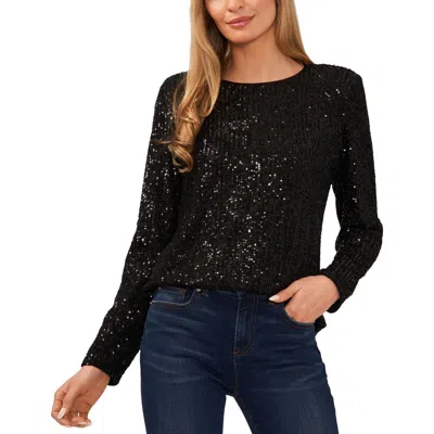 Sequin Long Sleeve Top In Rich Black