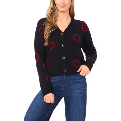 Heart Jacquard Cardigan In Black