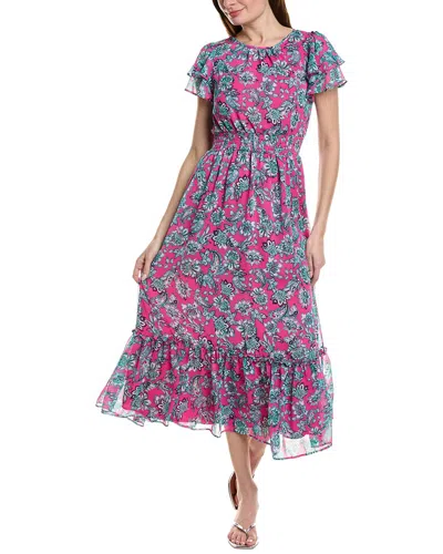 V Neck Tie Sleeve Smocked Waist Maxi Dress In Multi