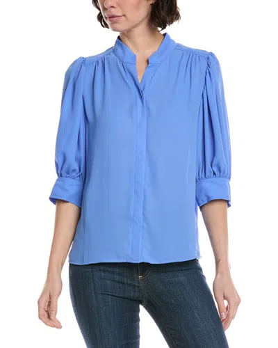 Contrast Ruffle Trim Long Sleeve V-neck Top In Blue