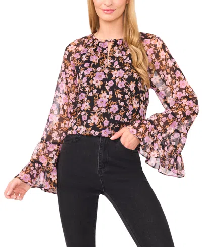 Ruffle Cuff Button Down Blouse In Purple