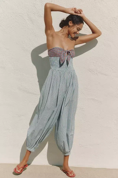100% Cotton Strapless Tie-front Jumpsuit In Multi