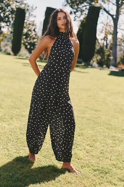 100% Cotton Strapless Tie-front Jumpsuit In Black