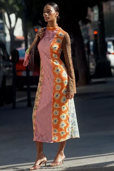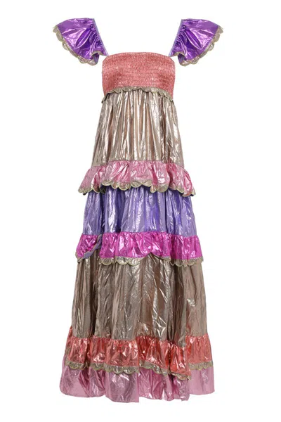 Nammu Puff Sleeves Maxi Dress In Yellow In Pink