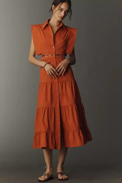 Lucero Tiered Sleeveless Cotton Midi Dress In Orange