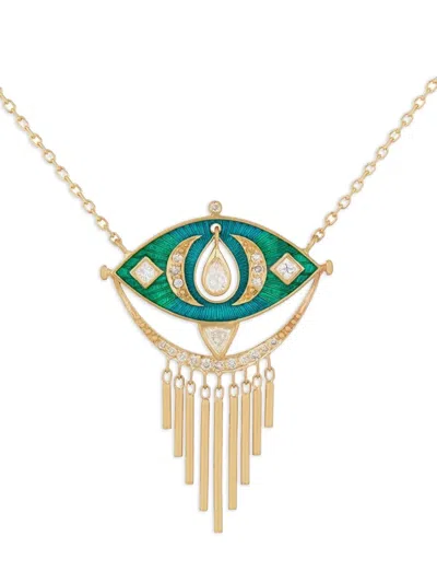 14ct Gold Turquoise Tourmaline Maya Pendant Necklace