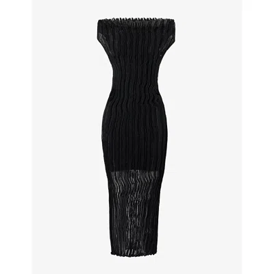 Fcl Womens Pleated Tubular Woven Midi Dress Black